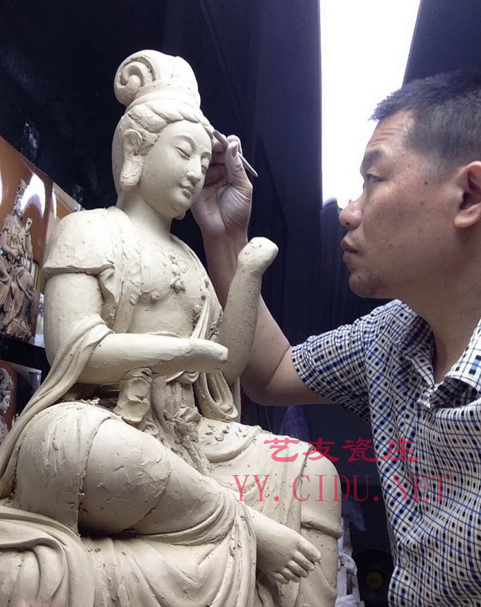 连紫华25岁时便受故宫博物院邀请复制何朝宗的“渡海达摩”,被业界称为“仿何第一人”;他还是目前少有的几位能够全面精通陶瓷各个工艺制作环节的瓷艺师,他突破胎釉配方、制坯和烧成工艺等多项技术难题,将德化白瓷的体量、质地和精细度从整体上提升到一个新的历史高度。他尤长于传统佛教人物的塑造,形神俱佳、高贵典雅,大朴善美,深具明代白瓷雕塑之气象。为了使传统技艺更好的传承下去,他创办福建省德化友滨陶瓷研究所,以师徒传习的方式为社会培养瓷艺人才百余位,为德化瓷艺乃至陶瓷产业的发展做出了重要贡献。